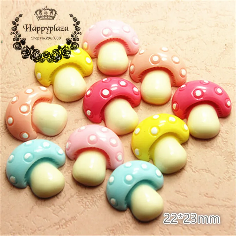 Premium 10pcs 22*23mm Mix Colors Resin Mushroom Flatback Cabochon Simulation Food Art Supply Decoration Cha