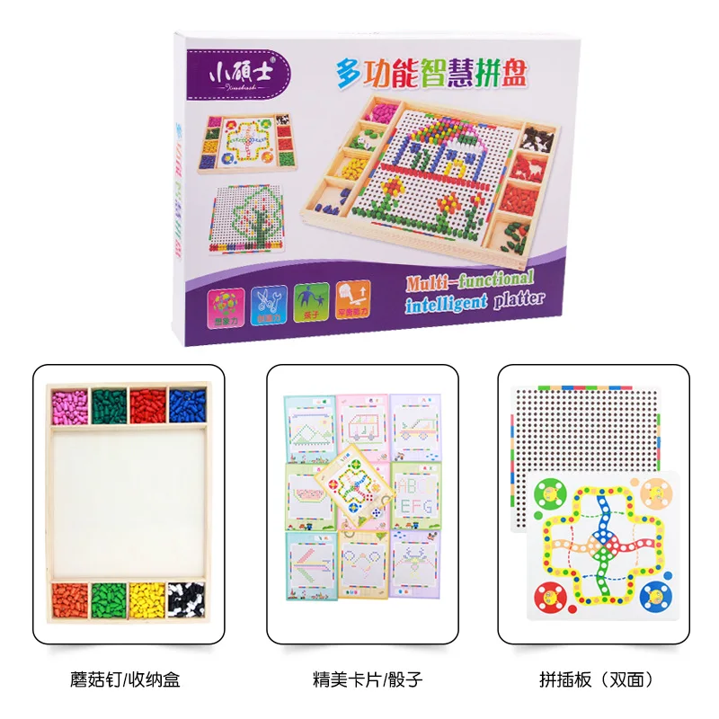 Cashback Montessori Educational Wooden Toys for Children Mushroom Nail Combination Spell Board Toy Multi-fun