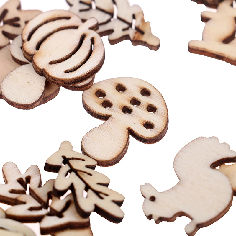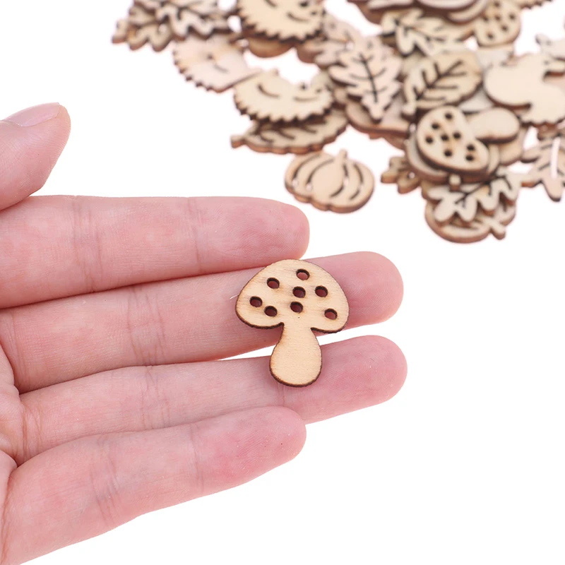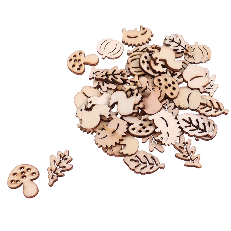 Pre-owned 50PCS/set Embellishments Squirrel Leaves Mushroom Shape Mixed Wooden Craft Scrapbooking Hedgehog De